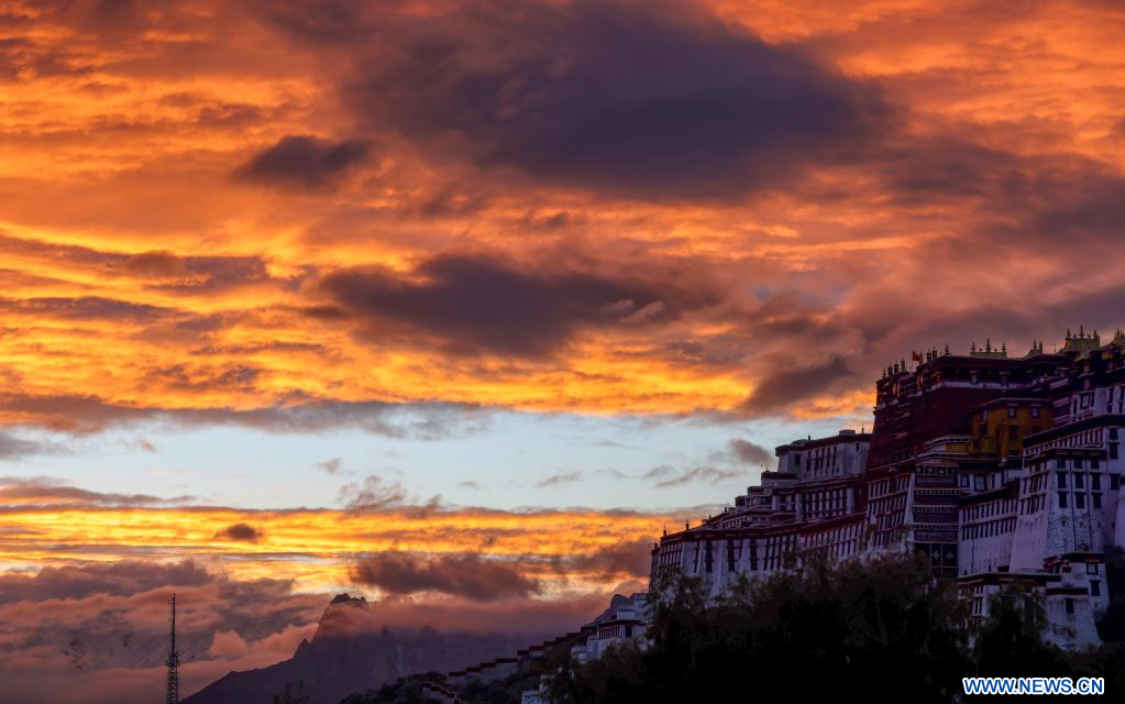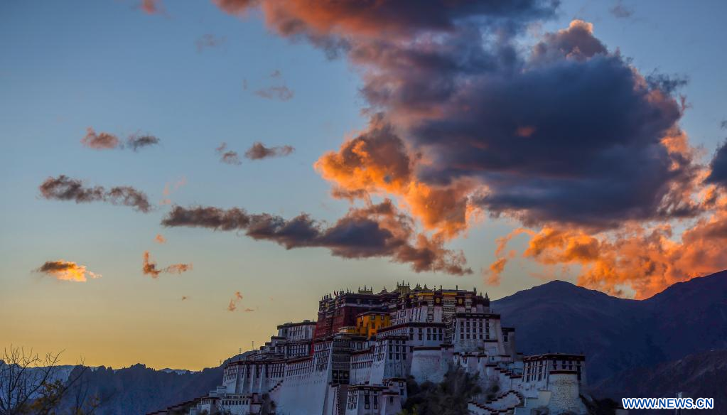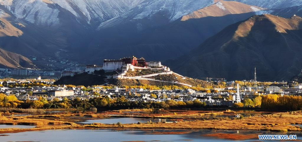 LHASSA, 30 octobre (Xinhua) -- Paysage automnal du palais du Potala à Lhassa, dans la région autonome du Tibet, dans le sud-ouest de la Chine, le 29 octobre 2022. (Photo : Shen Hongbing)