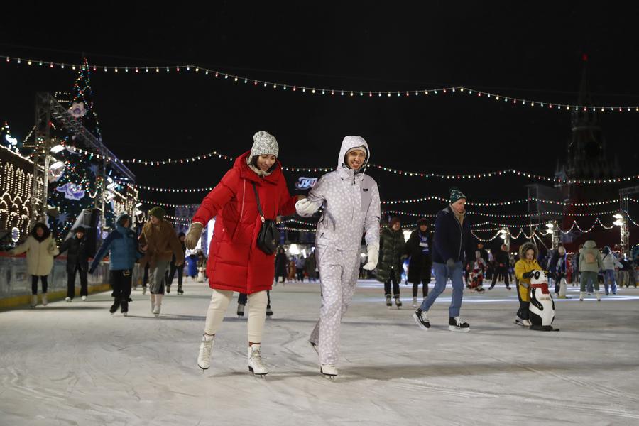 Des personnes patinent sur la patinoire GUM de la place Rouge à Moscou, en Russie, le 28 novembre 2022. (Xinhua/Alexander Zemlianichenko Jr)