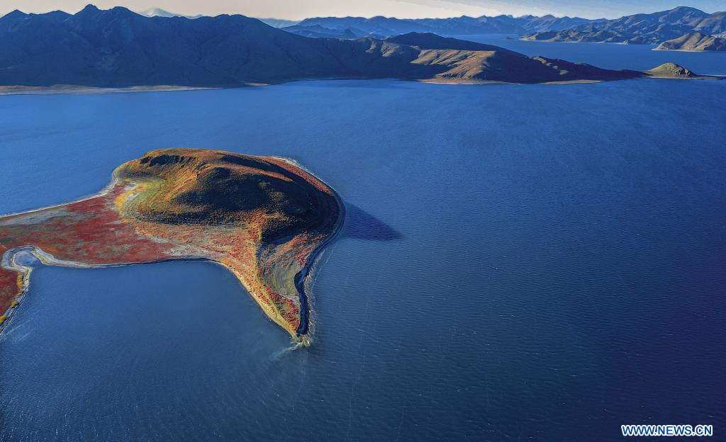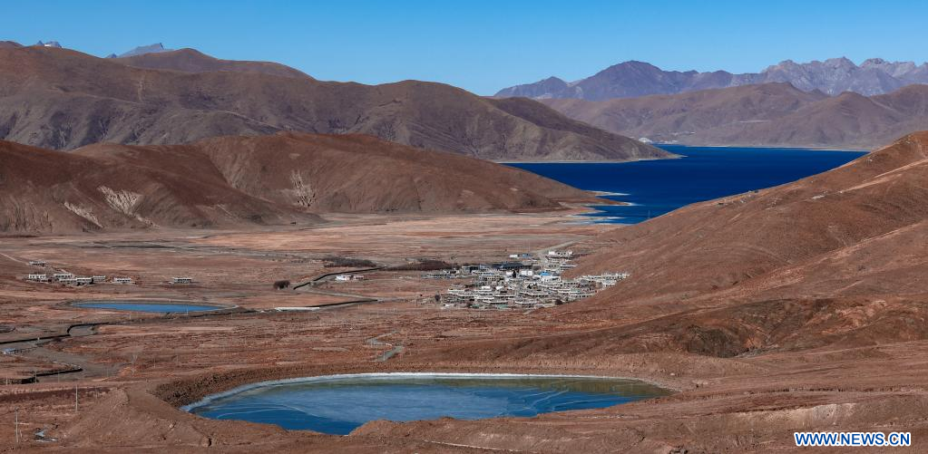 LHASSA, 13 décembre (Xinhua) -- Paysage du lac Yamdrok dans le district de Nagarze de la ville de Shannan, dans la région autonome du Tibet (sud-ouest de la Chine), le 11 décembre 2022. (Photo : Huang Yaoman)