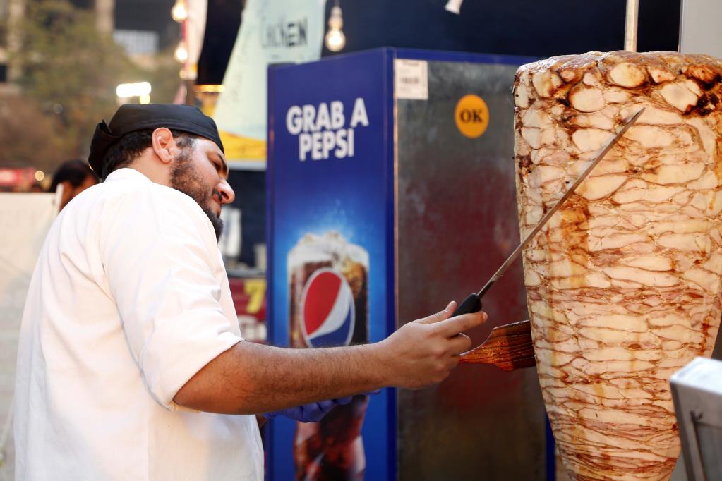 ISLAMABAD, 17 décembre (Xinhua) -- Un chef prépare un shawarma (un kebab traditionnel) lors d'un festival de l'alimentation dans la capitale pakistanaise d'Islamabad, le 17 décembre 2022. Ce festival de trois jours a débuté vendredi à Islamabad. (Xinhua/Ahmad Kamal)
