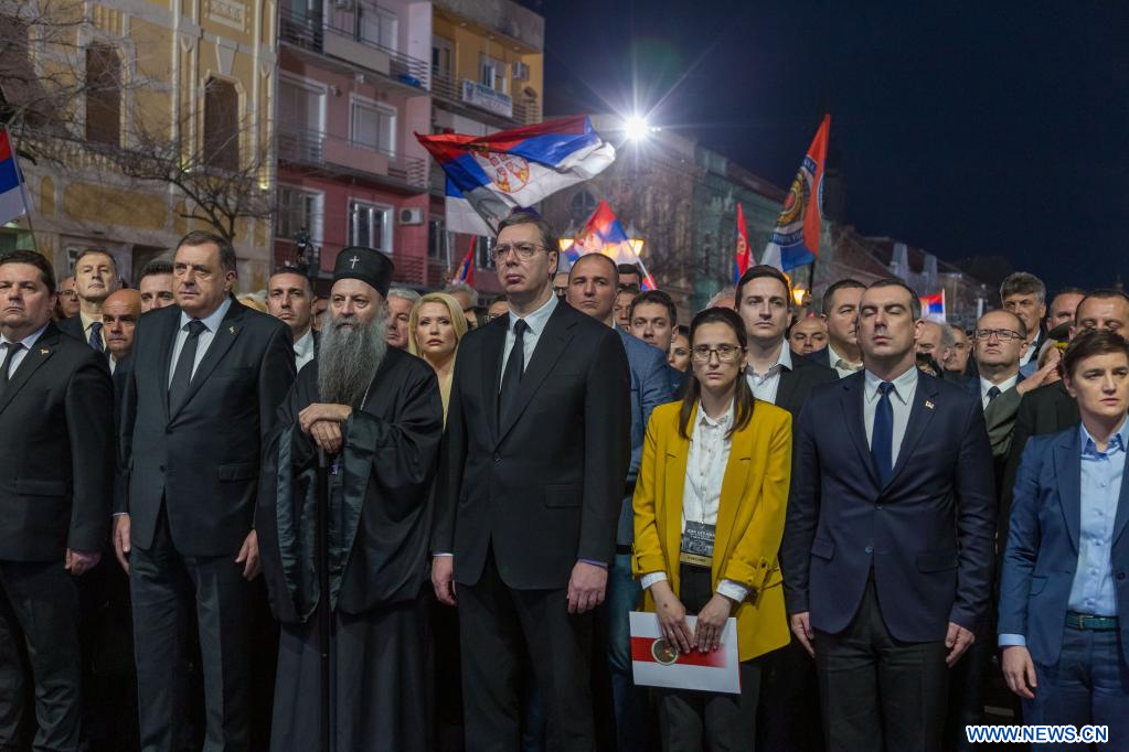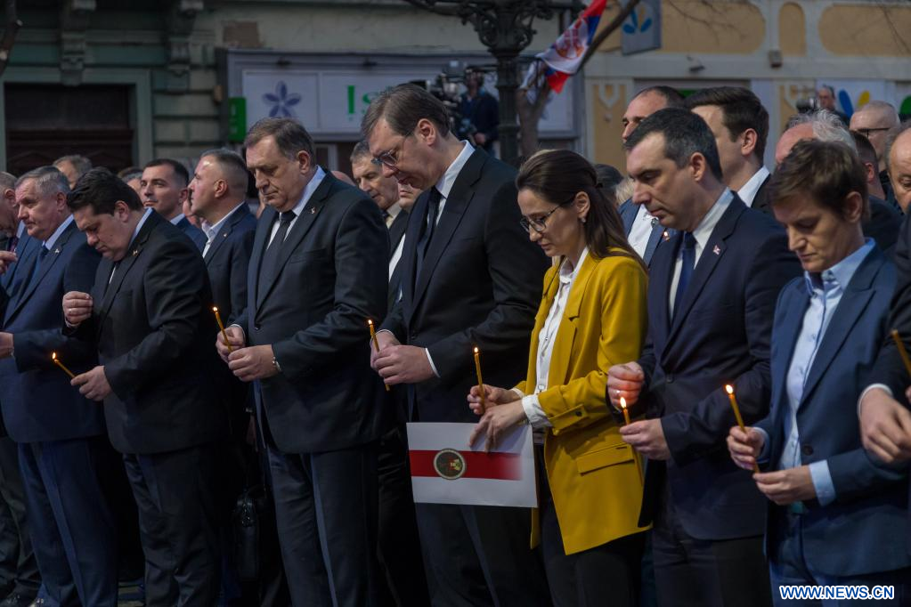 SOMBOR (Serbie), 24 mars (Xinhua) -- L'agression de l'Organisation du traité de l'Atlantique nord (OTAN) contre la Yougoslavie il y a 24 ans a marqué la mort du droit international, a déclaré vendredi le président serbe Aleksandar Vucic lors d'une commémoration dans la ville de Sombor (nord), où la première bombe est tombée en 1999.