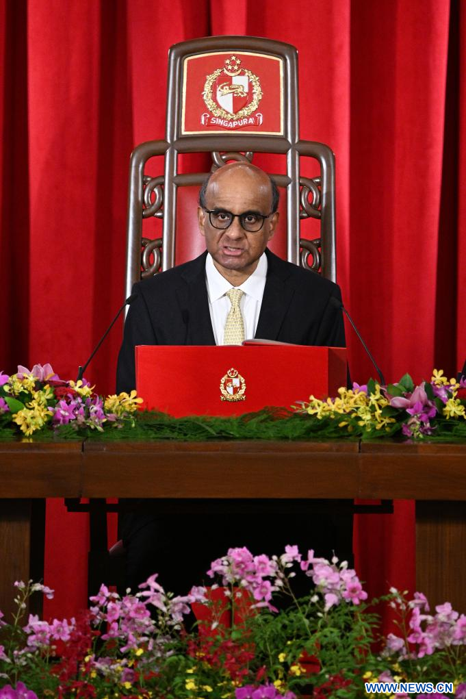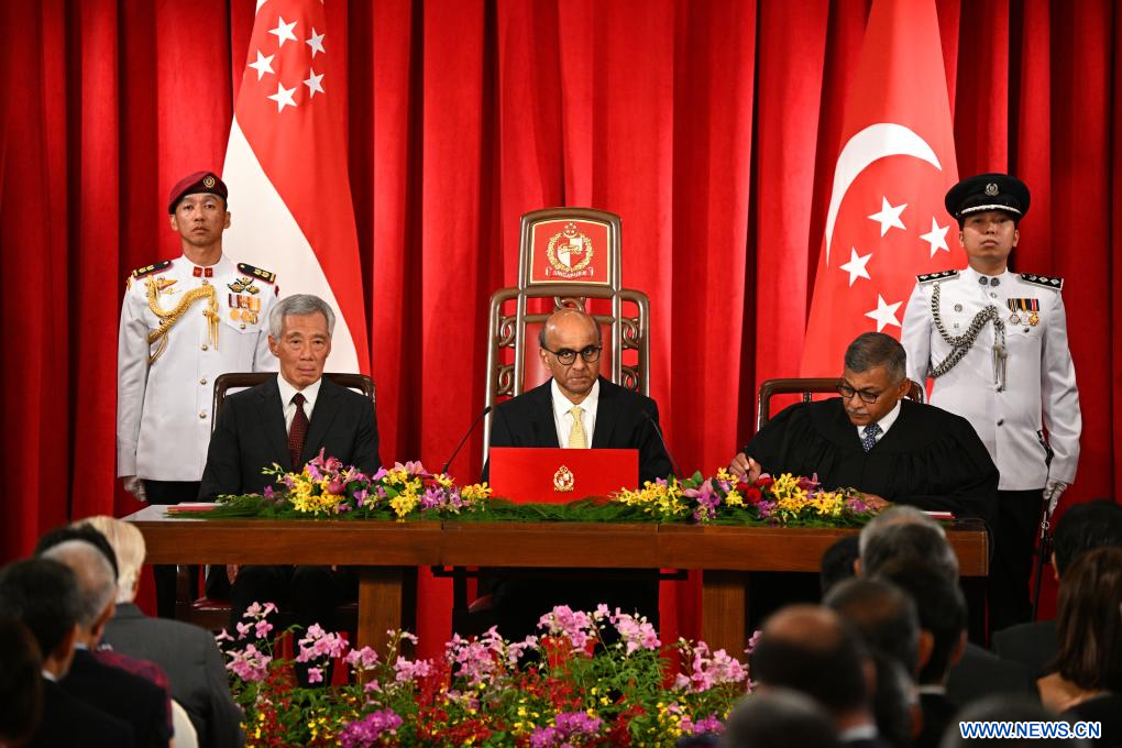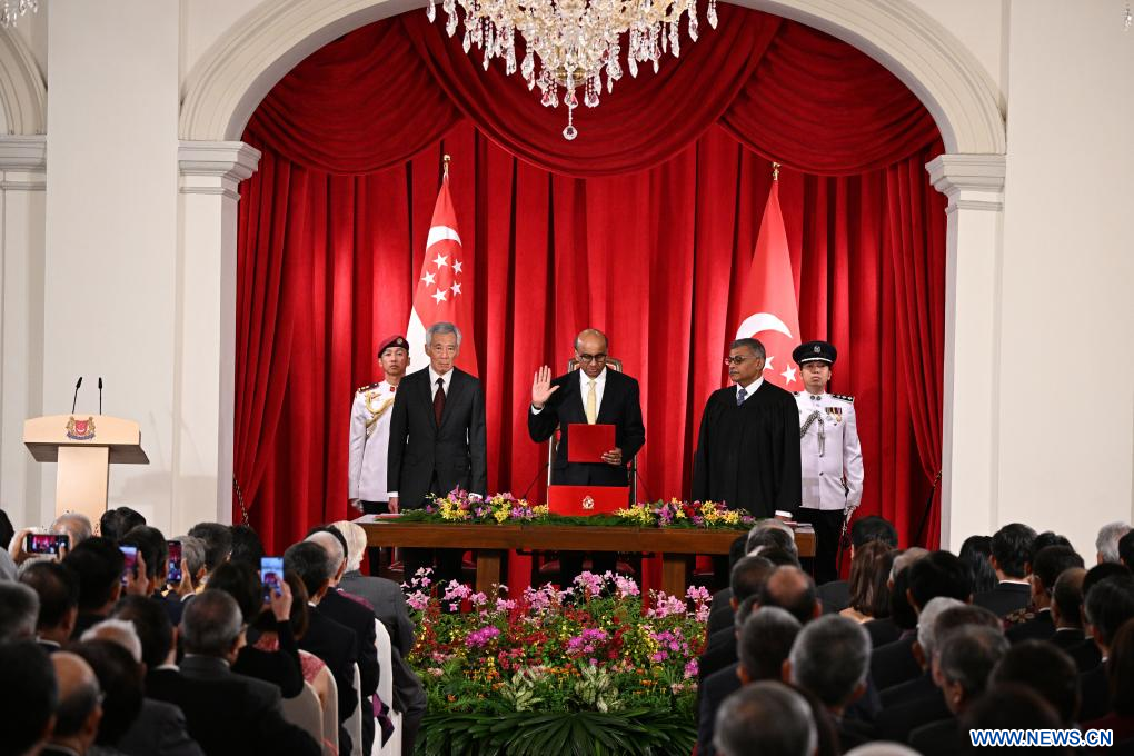 SINGAPOUR, 14 septembre (Xinhua) -- Tharman Shanmugaratnam a prêté serment jeudi soir en tant que neuvième président de Singapour à l'Istana, le palais présidentiel du pays.