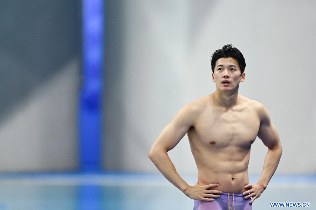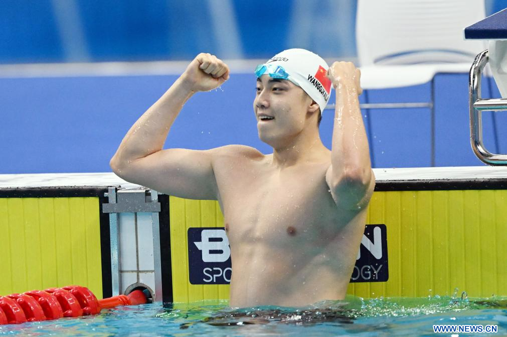 HANGZHOU, 26 septembre (Xinhua) -- Le Chinois Wang Shun après la finale du relais 4x200 libre masculin de natation aux 19es Jeux asiatiques, à Hangzhou, dans la province chinoise du Zhejiang (est), le 25 septembre 2023. (Photo : Xue Yuge)