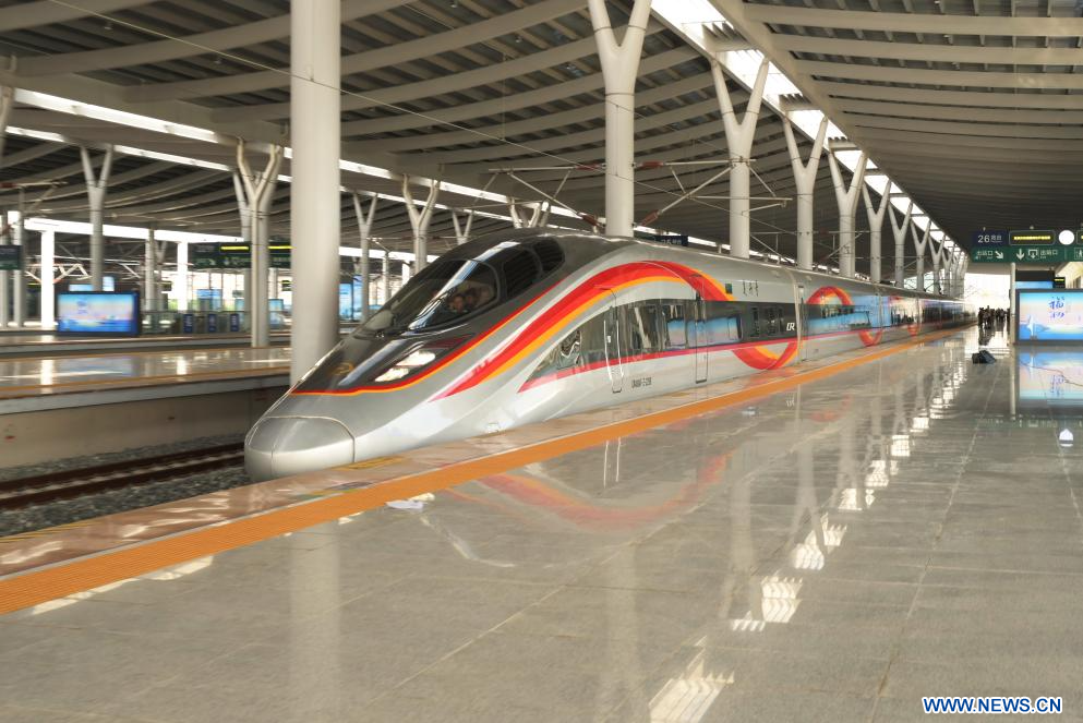 Un train à grande vitesse Fuxing G9801 est parti de Fuzhou, capitale de la province du Fujian (est), à 9h15, marquant l'inauguration du chemin de fer à grande vitesse Fuzhou-Xiamen-Zhangzhou, long de 277 km.