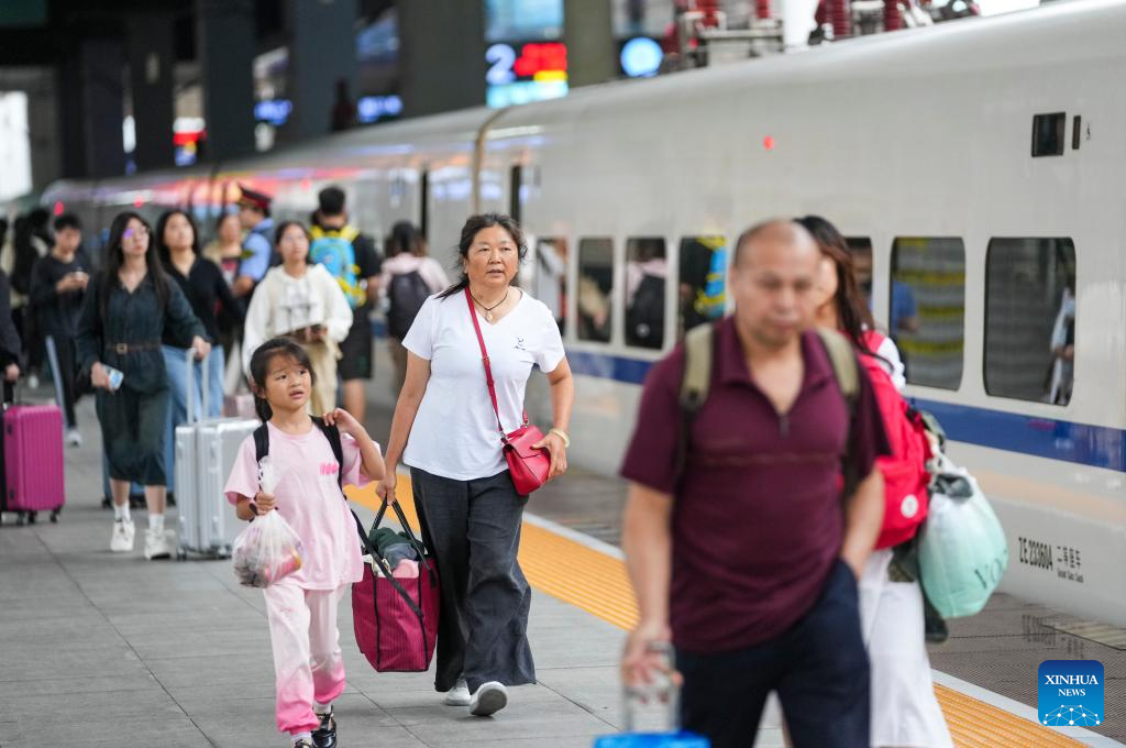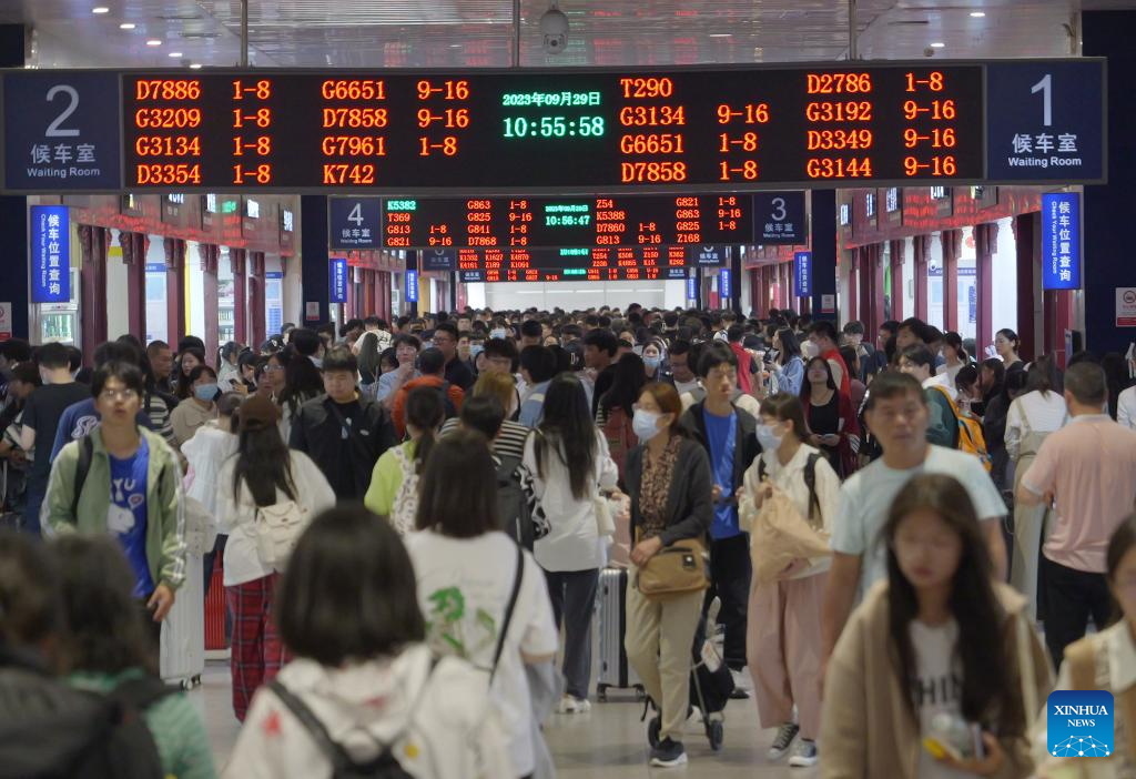 BEIJING, 30 septembre (Xinhua) -- Le nombre de voyages de passagers assurés par les chemins de fer chinois a atteint 20,098 millions vendredi, la troisième journée du pic de voyages de douze jours pour les vacances de la Fête de la mi-automne et de la Fête nationale, a annoncé samedi la société China State Railway Group Co., Ltd.