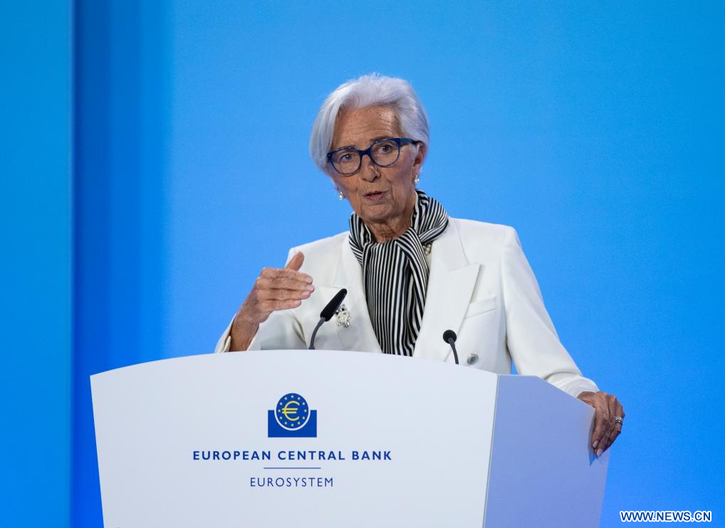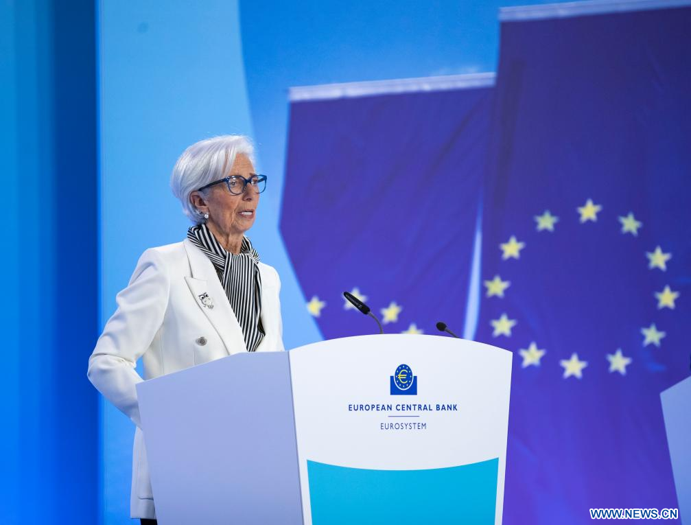 FRANCFORT, 25 janvier (Xinhua) -- La présidente de la Banque centrale européenne (BCE) Christine Lagarde s'exprime lors d'une conférence de presse à Francfort, en Allemagne, le 25 janvier 2024. La BCE a décidé jeudi de laisser ses taux d'intérêt directeurs inchangés, alors que l'inflation sous-jacente a chuté en décembre dernier. (Xinhua/Zhang Fan)