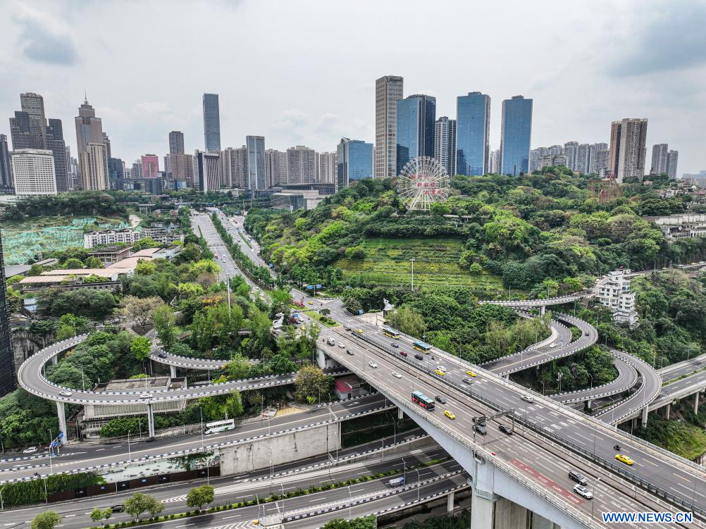 Photo prise le 23 avril 2024 montrant la vue de la municipalité de Chongqing, dans le sud-ouest de la Chine. (Xinhua/Tang Yi)
