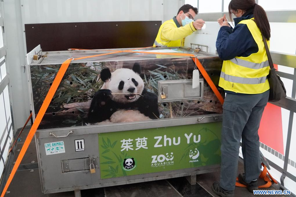 MADRID, 30 avril (Xinhua) -- Un couple de pandas géants est arrivé en Espagne sur un vol direct en provenance de Chine. Selon le zoo de Madrid, ils devraient vivre dans le zoo de la capitale espagnole pour les prochaines années.