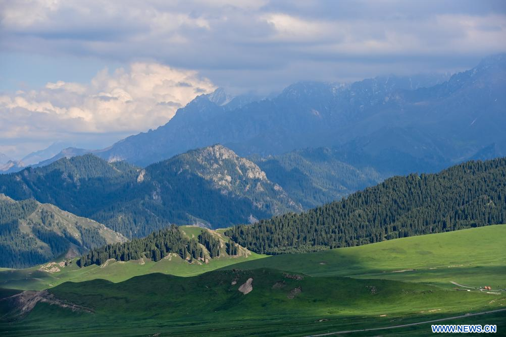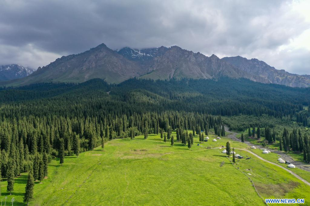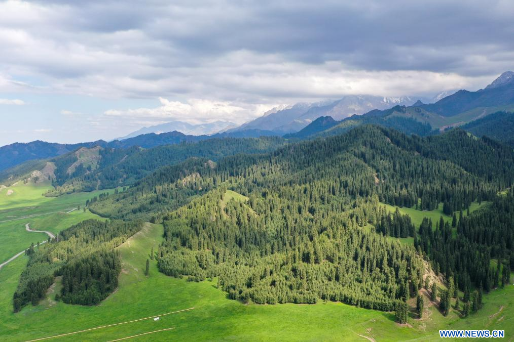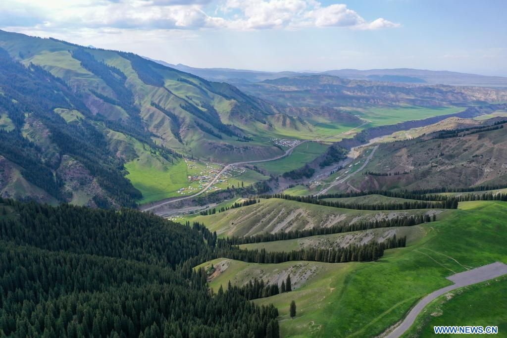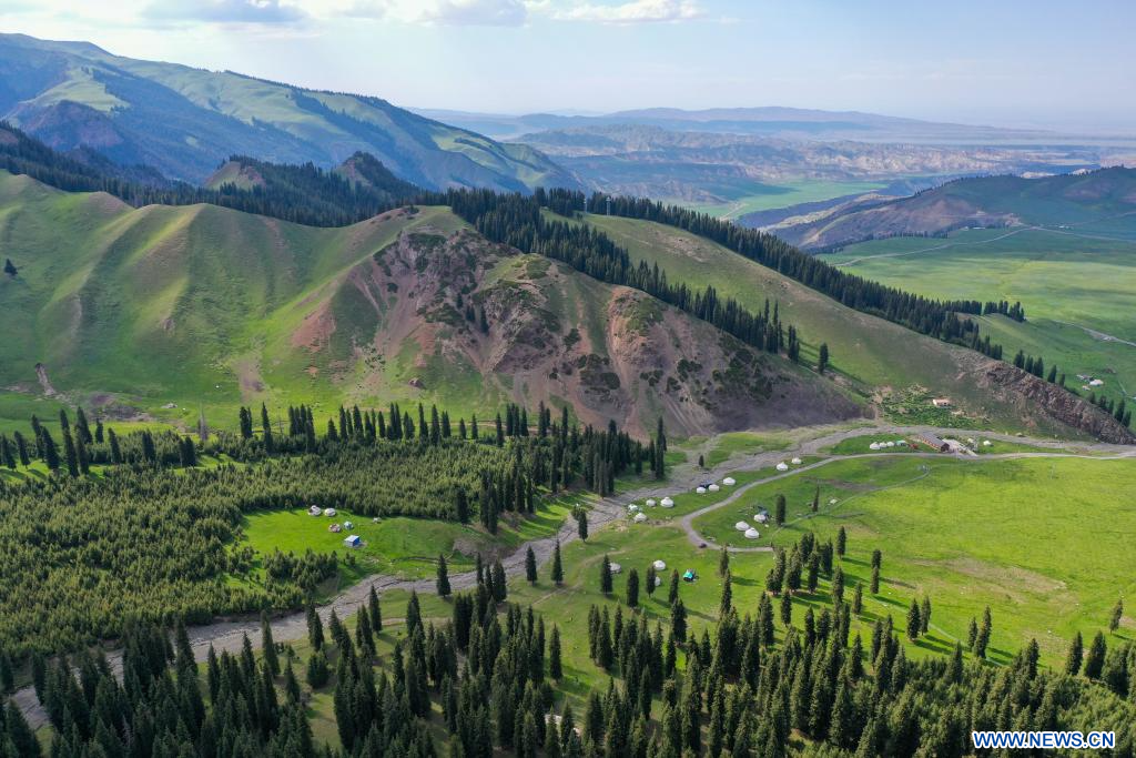 Photo aérienne prise par un drone le 5 juin 2024 montrant le paysage de la zone pittoresque de Lujiaowan dans la ville de Shawan, dans la région autonome ouïgoure du Xinjiang (nord-ouest de la Chine). (Xinhua/Ding Lei)
