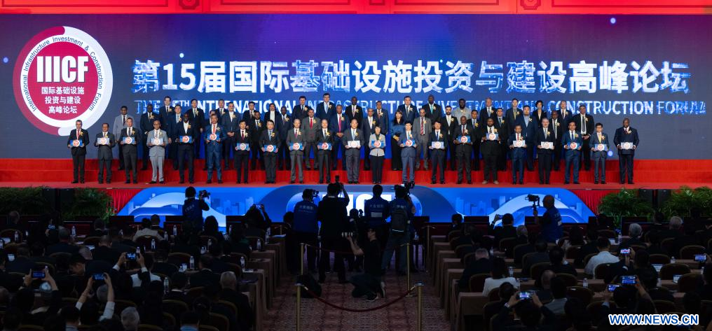 MACAO, 21 juin (Xinhua) -- Inauguration du 15e Forum international sur les investissements et la construction des infrastructures à Macao, dans le sud de la Chine, le 20 juin 2024. Le forum, axé sur la "Connectivité numérique innovante verte", a eu lieu jeudi et vendredi à Macao. (Photo : Cheong Kam Ka)