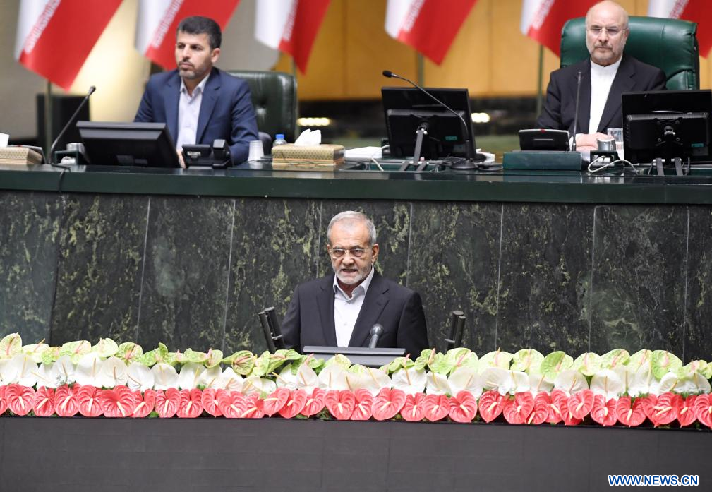 TEHERAN, 30 juillet (Xinhua) -- Massoud Pezeshkian a été investi en tant que neuvième président de l'Iran mardi lors d'une cérémonie organisée au parlement de Téhéran, a rapporté l'agence de presse officielle IRNA.