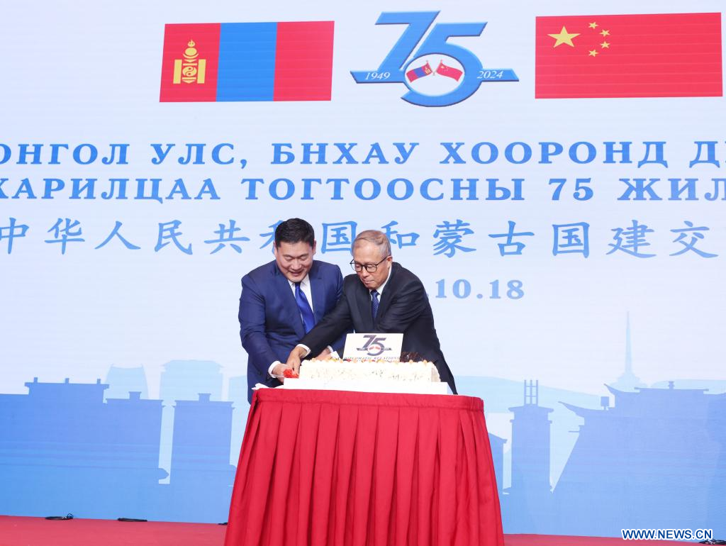 BEIJING, 18 octobre (Xinhua) -- La Chine et la Mongolie ont organisé une réception à Beijing vendredi afin de célébrer le 75e anniversaire de l'établissement de leurs liens diplomatiques.