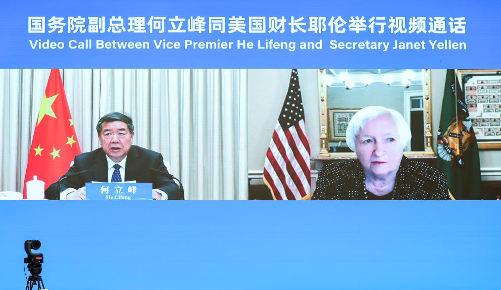 BEIJING, 7 janvier (Xinhua) -- Le vice-Premier ministre chinois, He Lifeng, s'est entretenu mardi par liaison vidéo avec la secrétaire américaine au Trésor, Janet Yellen. Les deux parties ont convenu de maintenir la communication, de gérer les différends et de continuer de stabiliser les relations économiques sino-américaines pendant la période de transition aux Etats-Unis.