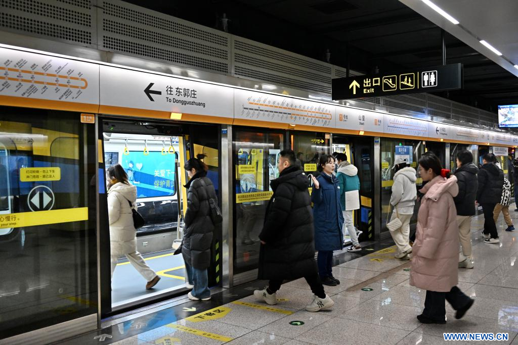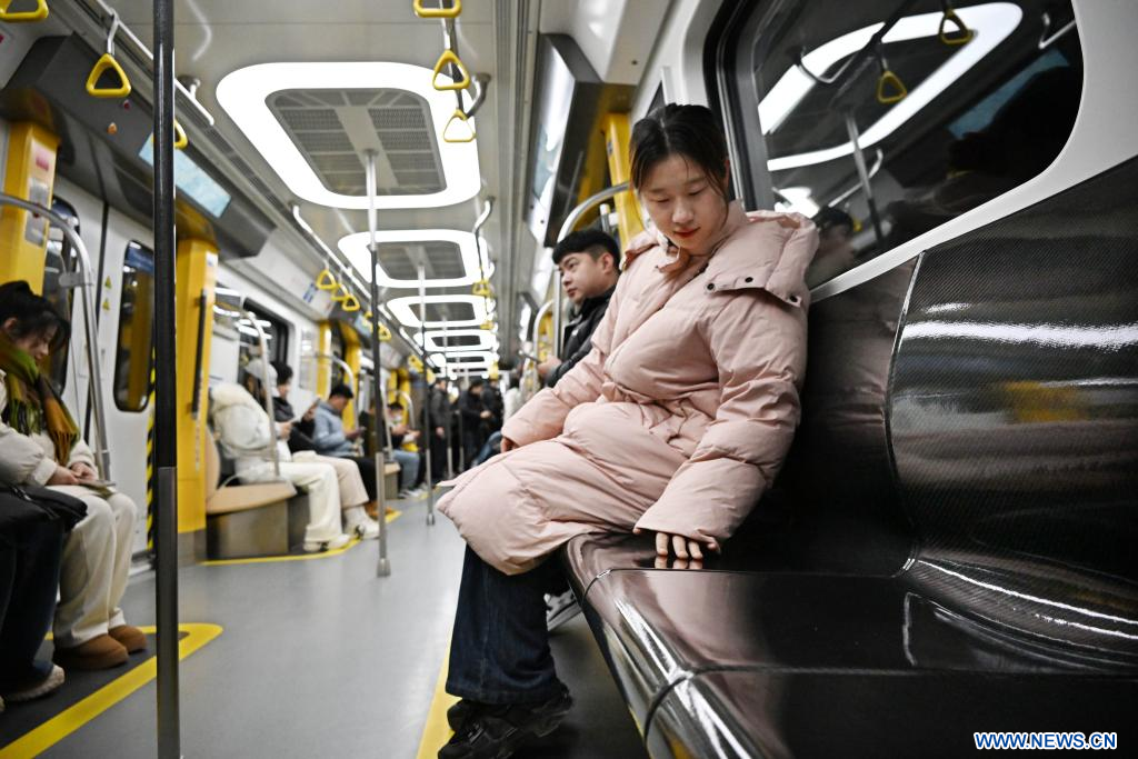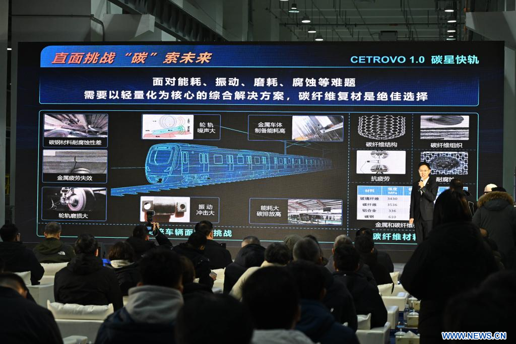 QINGDAO, 11 janvier (Xinhua) -- Une rame de métro en fibre de carbone, baptisée CETROVO 1.0, est entrée en service vendredi dans la ville portuaire de Qingdao, dans la province chinoise du Shandong (est).
