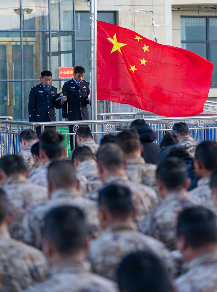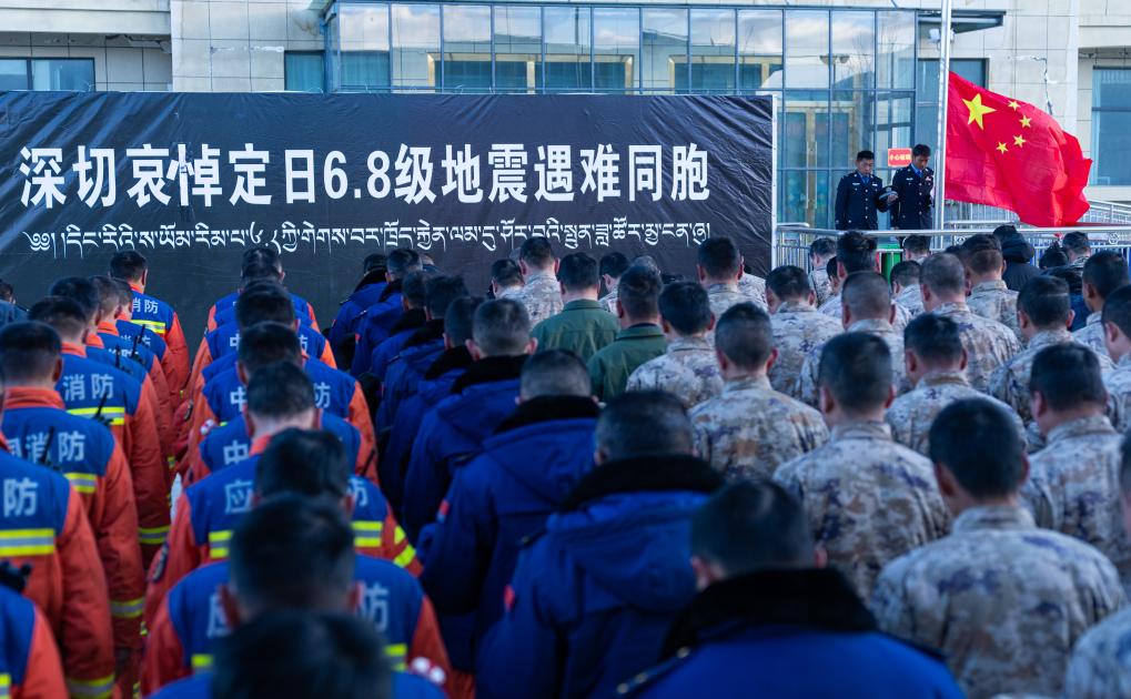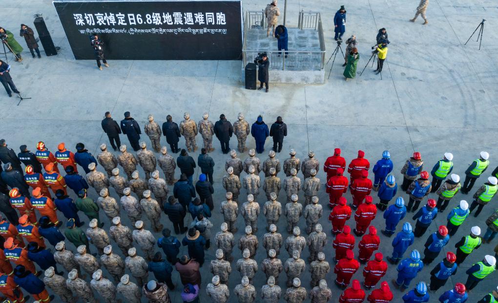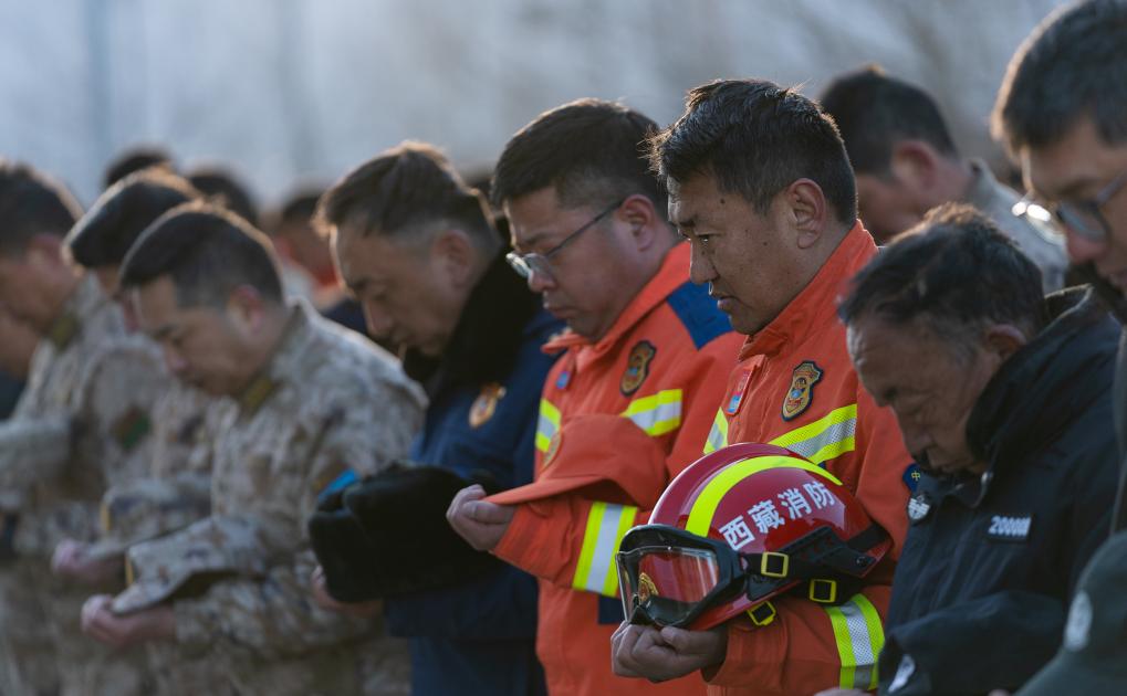 LHASSA, 13 janvier (Xinhua) -- Une cérémonie a été organisée lundi à la mémoire des victimes du séisme de magnitude 6,8 qui a frappé, la semaine dernière, le district de Dingri de la région autonome du Xizang, dans le sud-ouest de la Chine.