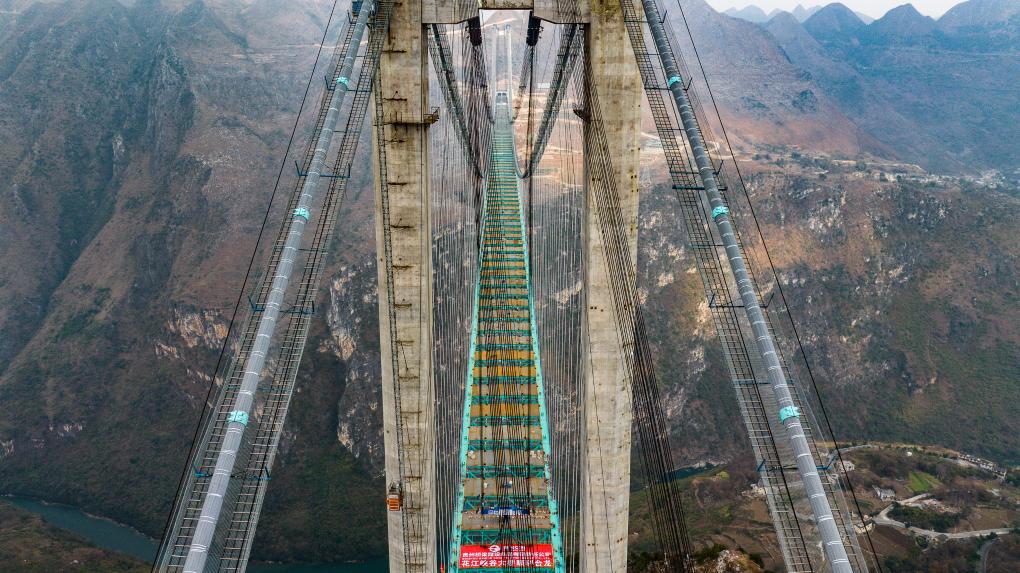GUIYANG, 17 janvier (Xinhua) -- La Chine a achevé vendredi, dans la province du Guizhou (sud-ouest), la construction de la structure principale d'un pont qui deviendra le plus haut du monde.