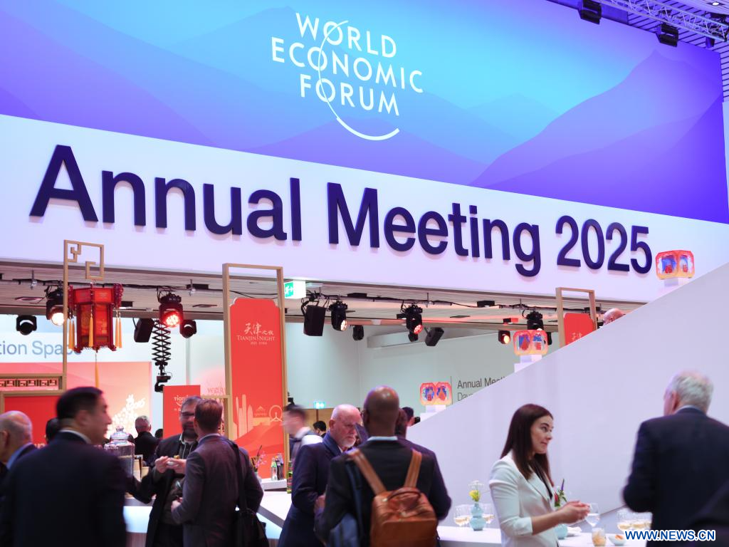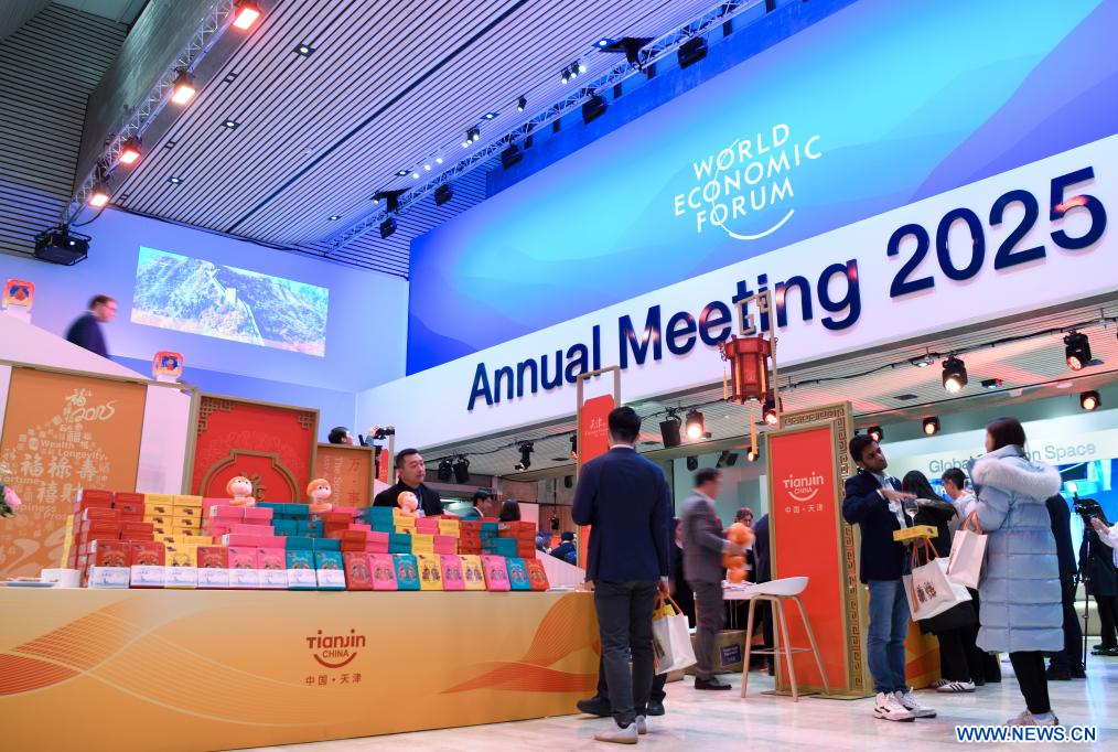 DAVOS, 22 janvier (Xinhua) -- Des participants assistent à une réception organisée par la ville chinoise de Tianjin lors de la réunion annuelle 2025 du Forum économique mondial à Davos, en Suisse, le 21 janvier 2025. Tianjin, ville hôte du Davos d'été 2025, a organisé cette réception mardi soir à l'approche de la prochaine fête du Printemps, ou le Nouvel An lunaire chinois. (Xinhua/Lian Yi)