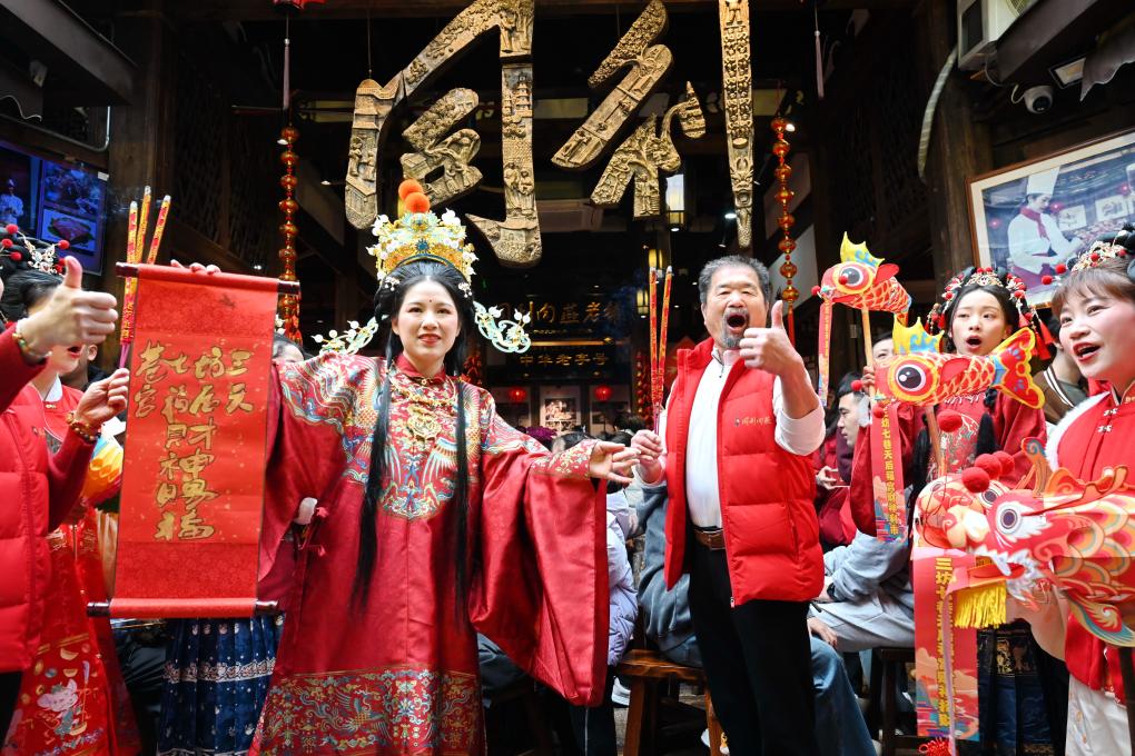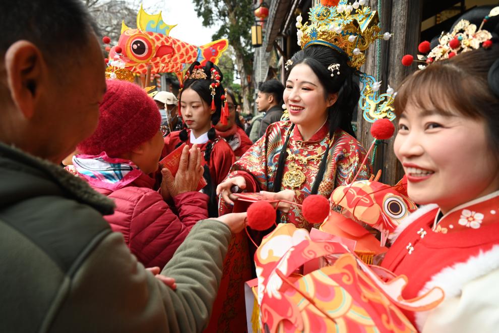 Des activités folkloriques ont été organisées dimanche à travers le pays pour accueillir les "Dieux de la richesse", une tradition pour célébrer le cinquième jour du Nouvel An chinois, ou la fête du Printemps. (Photo : Zhang Yixi)
