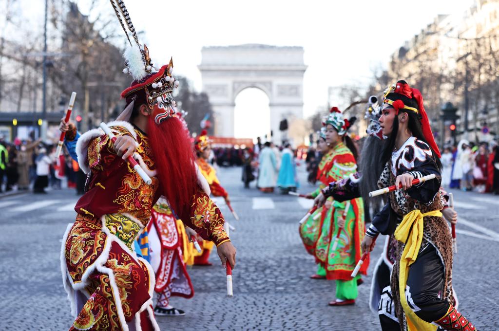 PARIS, 2 février (Xinhua) -- L'avenue des Champs-Elysées s'est transformée ce dimanche en un lieu magique, vibrant de couleurs et de traditions chinoises, pour célébrer la fête du Printemps. Un défilé exceptionnel a captivé les Parisiens et les touristes, dans une ambiance festive et musicale.