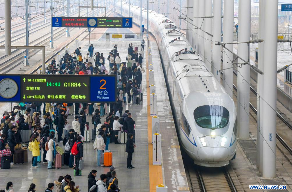 BEIJING, 23 février (Xinhua) -- Le nombre total de voyages interrégionaux de passagers à travers la Chine pendant les 40 jours du pic des voyages de la Fête du Printemps, également connue sous le nom de chunyun, a atteint le chiffre record de 9,02 milliards, selon des données officielles publiées dimanche.
