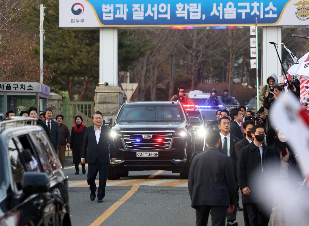 SEOUL, 8 mars (Xinhua) -- Le président sud-coréen Yoon Suk-yeol est sorti en marchant du centre de détention et s'est incliné devant ses partisans suite à la décision du parquet de ne pas faire appel de l'approbation de sa libération par un tribunal de Séoul, a-t-on appris samedi lors d'une retransmission en direct.