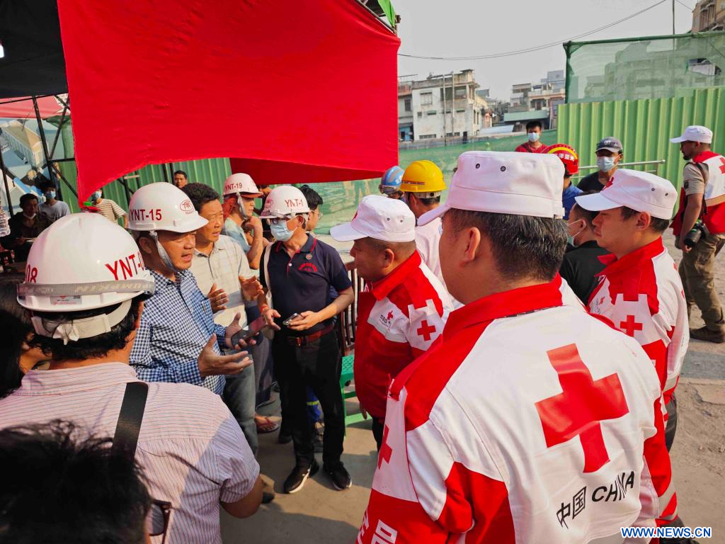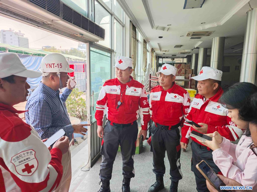 MANDALAY (Myanmar), 31 mars (Xinhua) -- Un groupe composé de 15 membres de l'équipe internationale de réponse aux urgences de la Croix-Rouge chinoise est arrivé tôt lundi à Mandalay, au Myanmar.
