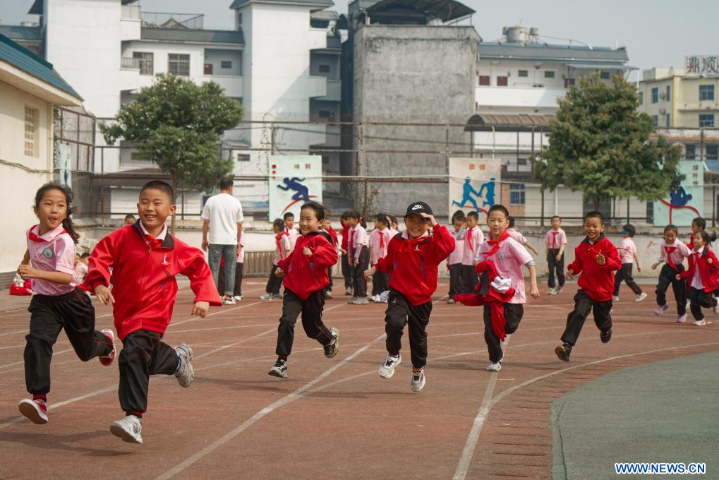 RUILI, 1er avril (Xinhua) -- Des élèves courent dans la cour de récréation d'une école primaire à Ruili, ville de la province chinoise du Yunnan (sud-ouest), le 31 mars 2025. (Photo : Gao Yongwei)