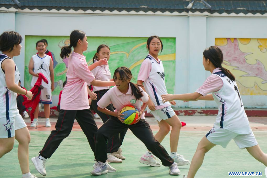 RUILI, 1er avril (Xinhua) -- Des élèves jouent au basket-ball dans la cour de récréation d'une école primaire à Ruili, ville de la province chinoise du Yunnan (sud-ouest), le 31 mars 2025. (Photo : Gao Yongwei)