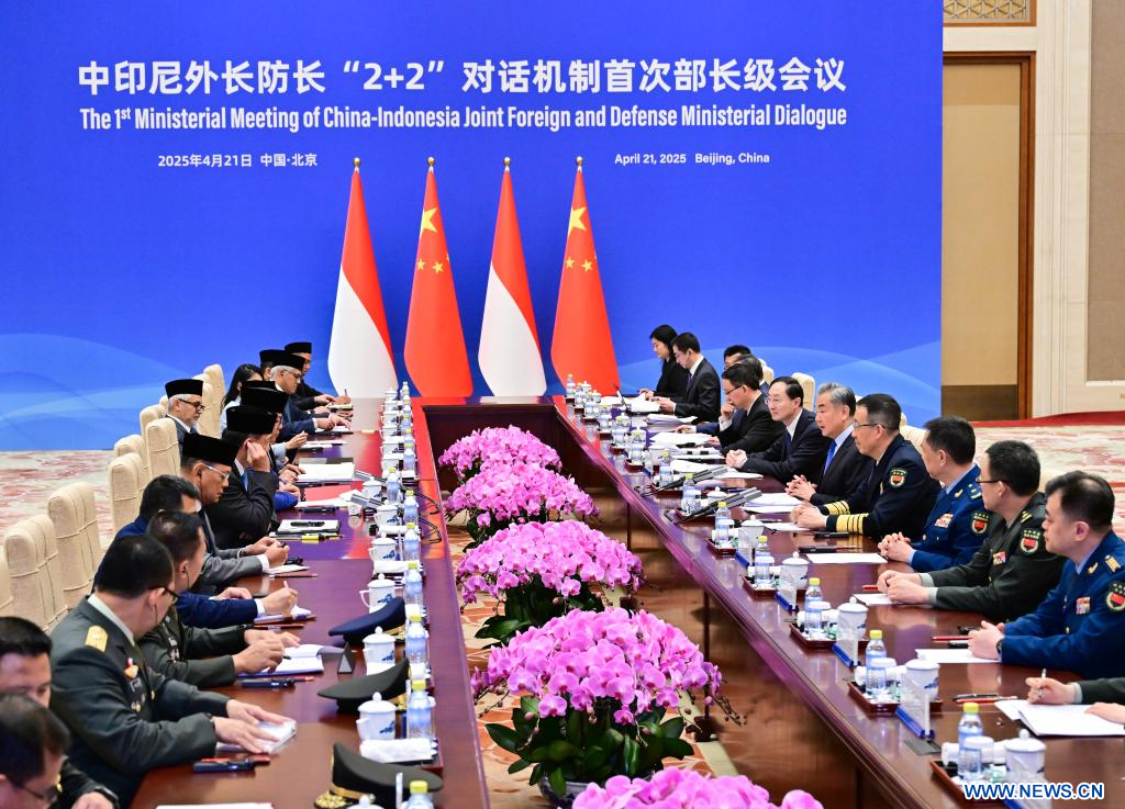 BEIJING, 21 avril (Xinhua) -- La Chine et l'Indonésie ont tenu lundi la première réunion ministérielle du Dialogue conjoint des ministres des Affaires étrangères et de la Défense à Beijing.