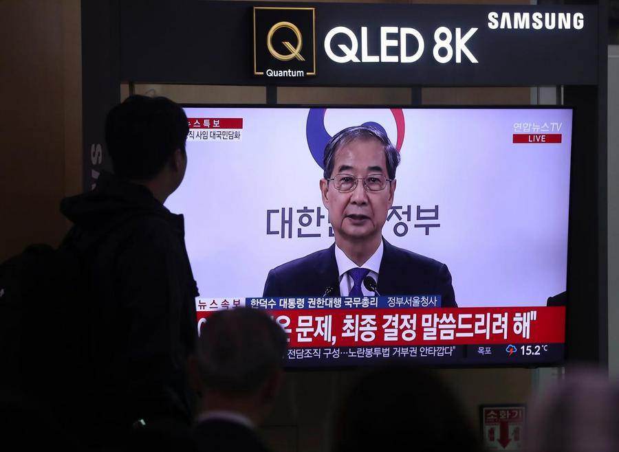 SEOUL, 1er mai (Xinhua) -- Le président par intérim et Premier ministre sud-coréen Han Duck-soo a annoncé jeudi sa démission lors d'une allocution télévisée à la nation, alors que l'on s'attend à ce qu'il se présente aux élections présidentielles.
