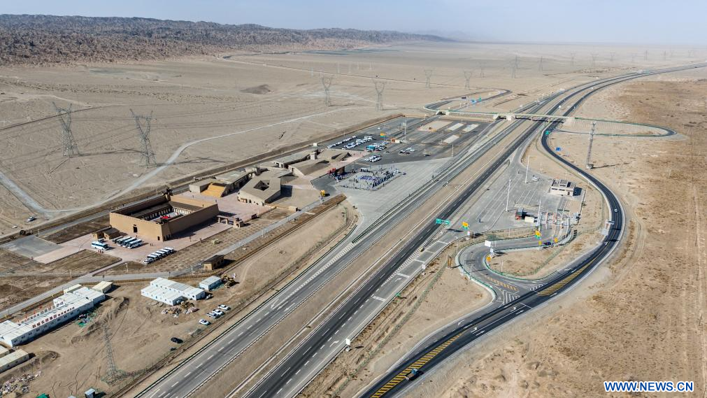 DUNHUANG, 2 mai (Xinhua) -- Vue aérienne prise par un drone montrant des visiteurs explorant les ruines de Xuanquanzhi à Dunhuang, dans la province chinoise du Gansu (nord-ouest), le 29 avril 2025.