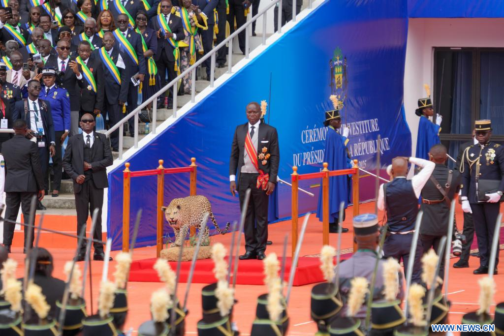 LIBREVILLE, 3 mai (Xinhua) -- Brice Clotaire Oligui Nguema, élu président de la république gabonaise à l'issue du scrutin présidentiel du 12 avril dernier avec 94,85 % des suffrages, a prêté serment samedi dans le stade de l'amitié sino-gabonaise à Libreville.