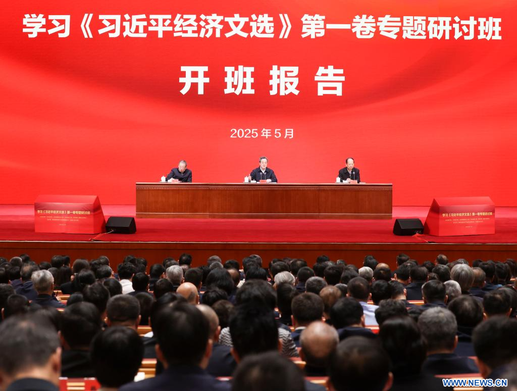 BEIJING, 6 mai (Xinhua) -- Le vice-Premier ministre chinois Ding Xuexiang a appelé mardi à redoubler d'efforts pour approfondir la compréhension et la mise en œuvre de la pensée de Xi Jinping sur l'économie, et renforcer la direction centralisée et unifiée du Comité central du Parti communiste chinois (PCC) sur le travail économique.