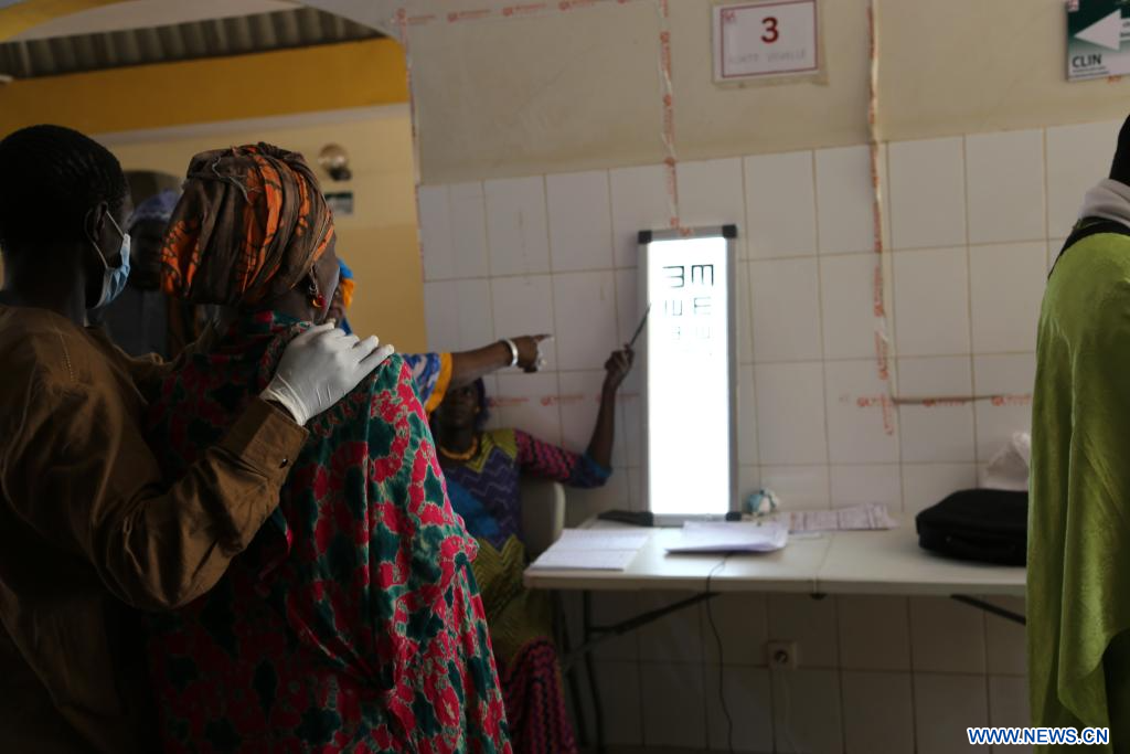 DAKAR, 6 mai (Xinhua) -- Au petit matin du 2 mai, dans le véhicule chirurgical mobile de l'hôpital de Fatick, dans l'ouest du Sénégal, Thiékouta Diouf, 84 ans, repose calmement sur la table d'opération. Entre les mains du chirurgien principal venu de la province chinoise du Fujian, la pince capsulaire et le bistouri dansent devant ses yeux. Moins de vingt minutes plus tard, une lentille intraoculaire pliable sur mesure est implantée avec succès.