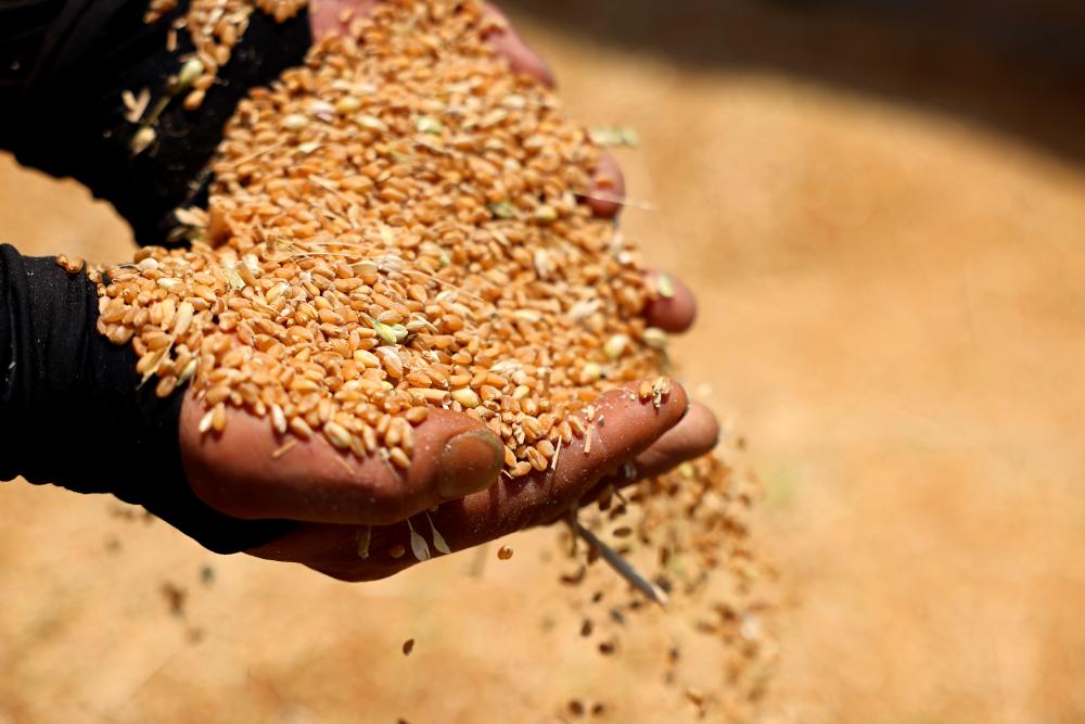 BEIJING, 26 mai (Xinhua) -- Un agriculteur montre du blé fraîchement récolté dans le village de Shagou de la ville de Zaozhuang, dans la province chinoise du Shandong (est), le 25 mai 2025.