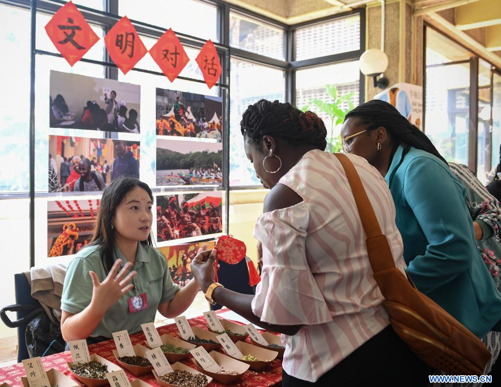 NAIROBI, 6 juin (Xinhua) -- Des participants découvrent des sachets médicinaux chinois lors d'un événement organisé à l'occasion de la Journée internationale pour le dialogue entre les civilisations à Nairobi, la capitale kenyane, le 5 juin 2025. Cette journée y a été célébrée jeudi, avec un appel à favoriser les ponts d'amitié et de compréhension entre les peuples de cultures différentes. (Xinhua/Li Yahui)