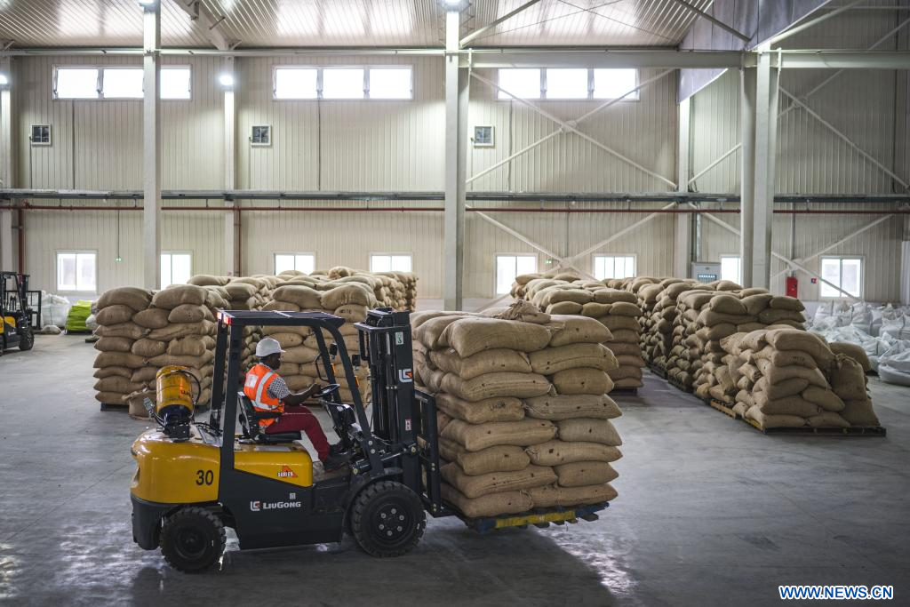 ABIDJAN, 10 juin (Xinhua) -- Alors que la saison des pluies apporte une fraîcheur bienvenue en Côte d'Ivoire, une activité intense se développe dans la zone industrielle PK24, en périphérie nord-ouest d'Abidjan, la capitale économique de la Côte d'Ivoire, marquée par de longues files de camions chargés de fèves de cacao et le va-et-vient des travailleurs qui animent les lieux.