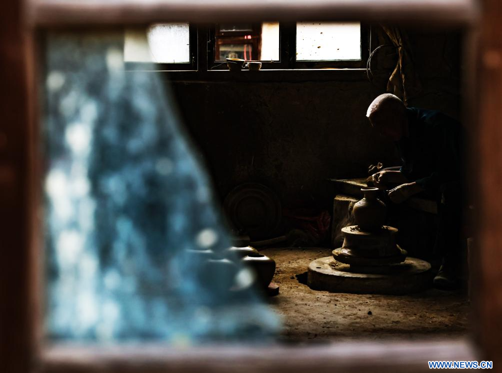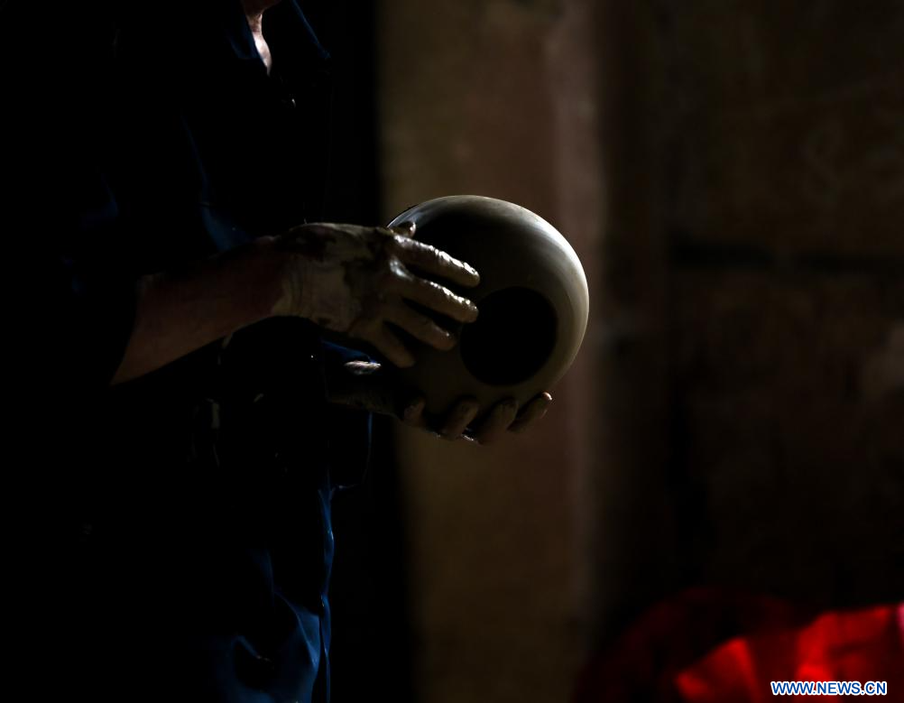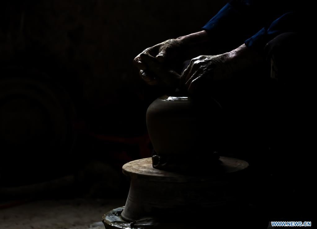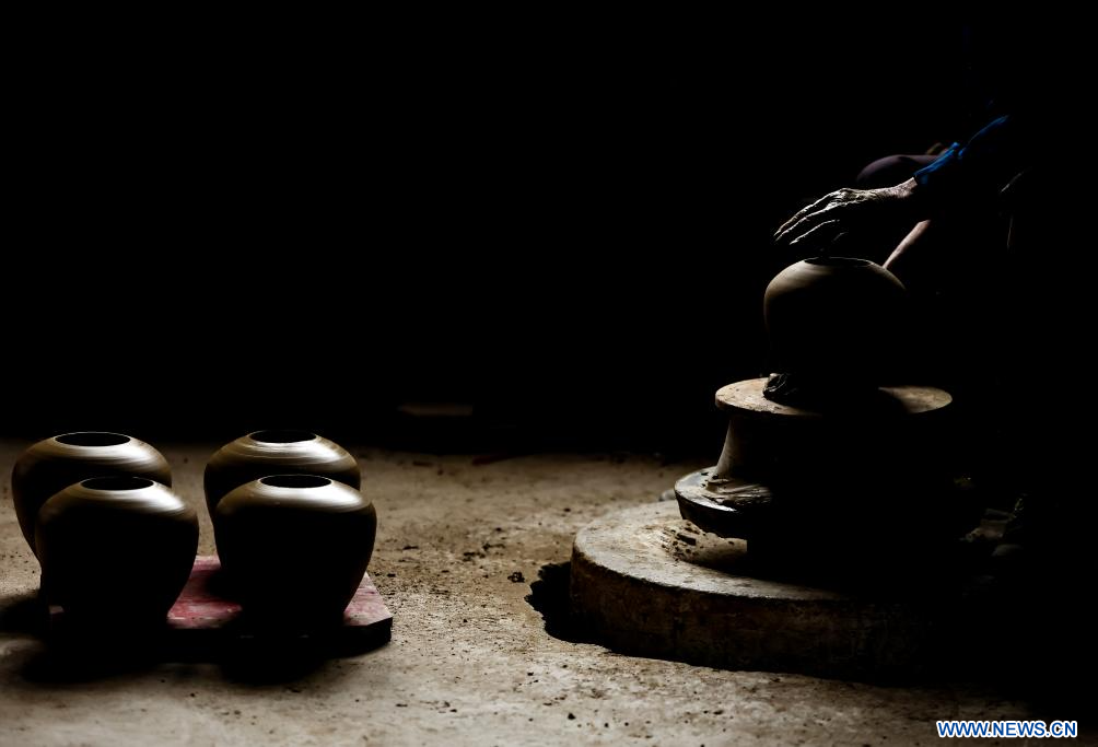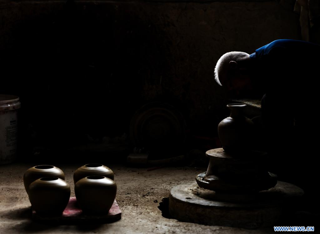 Le bourg de Pule possède une longue tradition de production de poterie. Ses artisans perpétuent la technique traditionnelle de la poterie d'argile, tout en développant une gamme de nouveaux produits, insufflant ainsi un dynamisme renouvelé à cet artisanat. (Photo : Lan Hongguang)