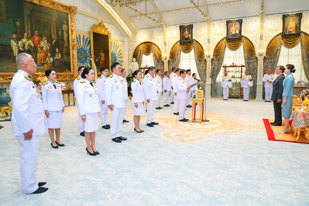 Le vice-Premier ministre Suriya Juangroongruangkit, en sa qualité de chef du gouvernement par intérim, a conduit 14 ministres nouvellement nommés ou réaffectés à prêter le serment d'allégeance devant le souverain, une formalité requise avant d'assumer leurs fonctions.