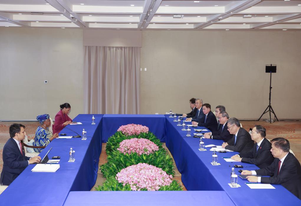 M. Li a fait ces remarques lors de sa rencontre avec la directrice générale de l'Organisation mondiale du commerce (OMC), Ngozi Okonjo-Iweala, en marge du 17e Sommet des BRICS.