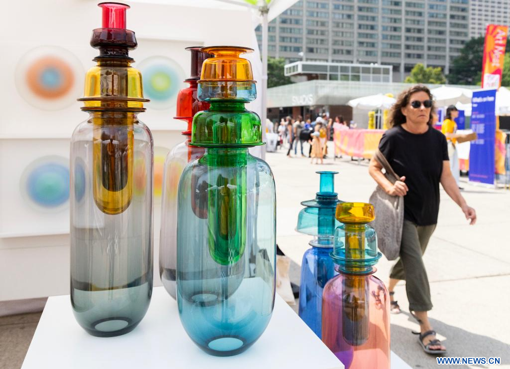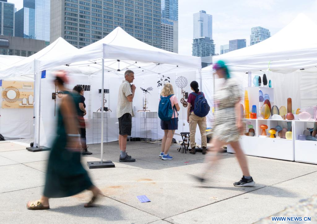 TORONTO, 12 juillet (Xinhua) -- Des gens visitent la Foire d'art en plein air de Toronto 2025, au Canada, le 11 juillet 2025. L'une des plus grandes foires du genre au Canada, cet événement de trois jours a débuté vendredi avec la participation de plus de 400 artistes. (Xinhua/Zou Zheng)