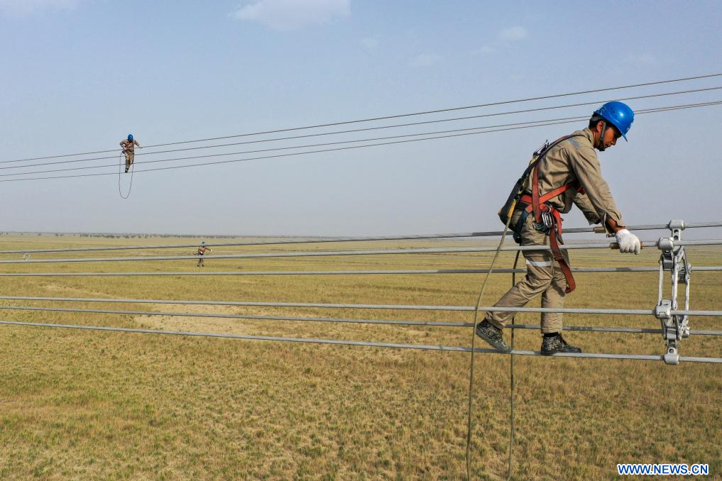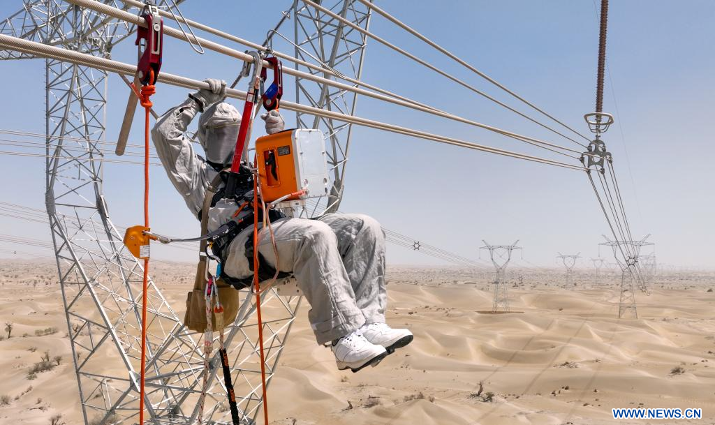 URUMQI, 13 juillet (Xinhua) -- La Chine a achevé la construction d'une boucle de transmission électrique à très haute tension de 4.197 km autour du bassin de Tarim, qui abrite le plus grand désert du pays, marquant ainsi une avancée majeure dans le développement des infrastructures du sud de la région autonome ouïgoure du Xinjiang, dans le nord-ouest de la Chine.