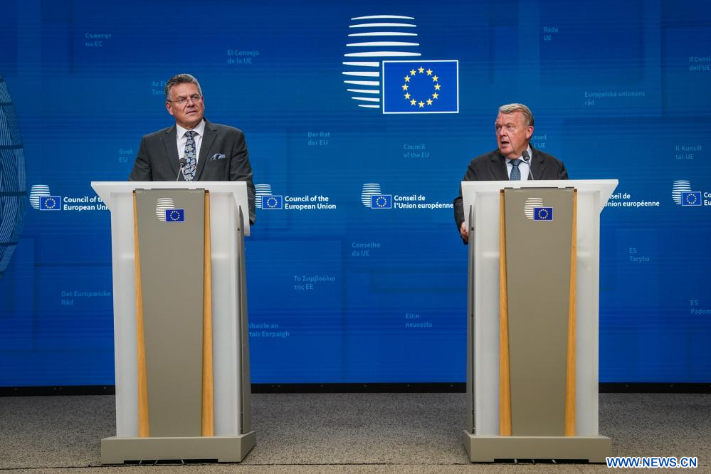 BRUXELLES, 14 juillet (Xinhua) -- Le ministre danois des Affaires étrangères, Lars Lokke Rasmussen, a condamné la menace de l'administration du président américain Donald Trump d'imposer des droits de douane de 30% aux exportations de l'Union européenne (UE), la qualifiant d'"absolument inacceptable" lors d'une conférence de presse conjointe lundi à Bruxelles avec le commissaire européen au Commerce et à la Sécurité économique, Maros Sefcovic.