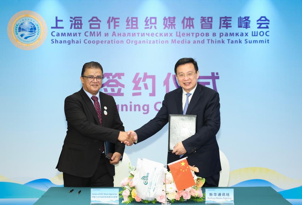 Fu Hua, président de l'Agence de presse Xinhua, a assisté aux cérémonies d'échange et de signature d'accords avec Abdullah Kose, vice-directeur général de l'agence Demiroren de Turquie, Mohammed Al-Yami, directeur général de l'Union des agences de presse de l'Organisation de coopération islamique, et Iryna Akulovich, directrice générale de l'Agence télégraphique bélarusse.