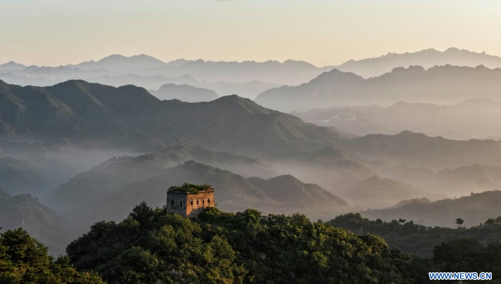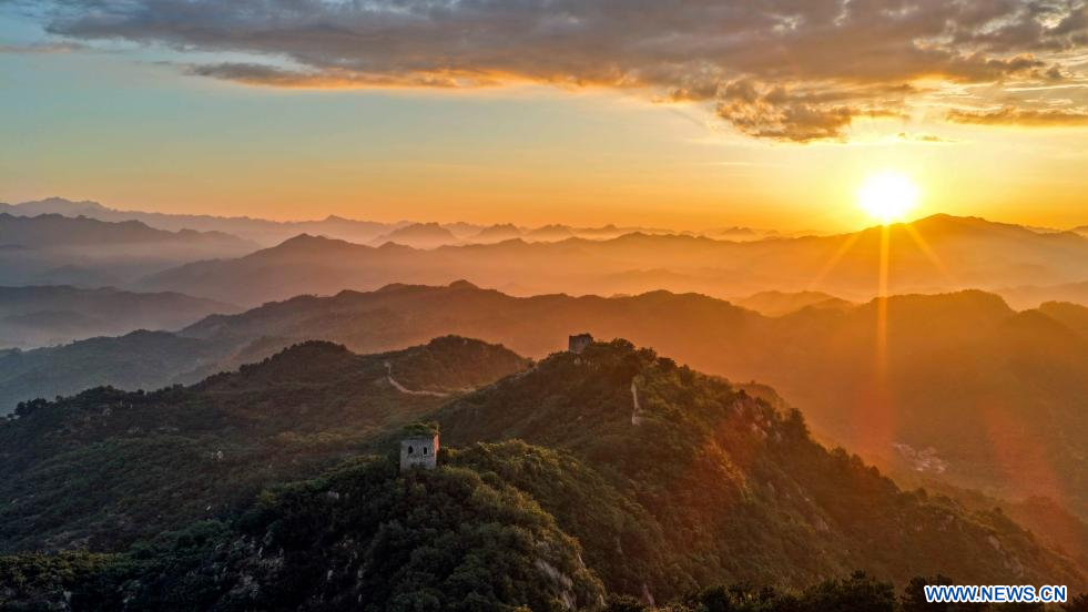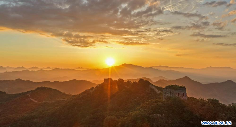 ZUNHUA, 8 août (Xinhua) -- Photo aérienne prise par un drone montrant la Grande Muraille à Zunhua, dans la province chinoise du Hebei (nord), le 7 août 2025. (Photo : Liu Mancang)