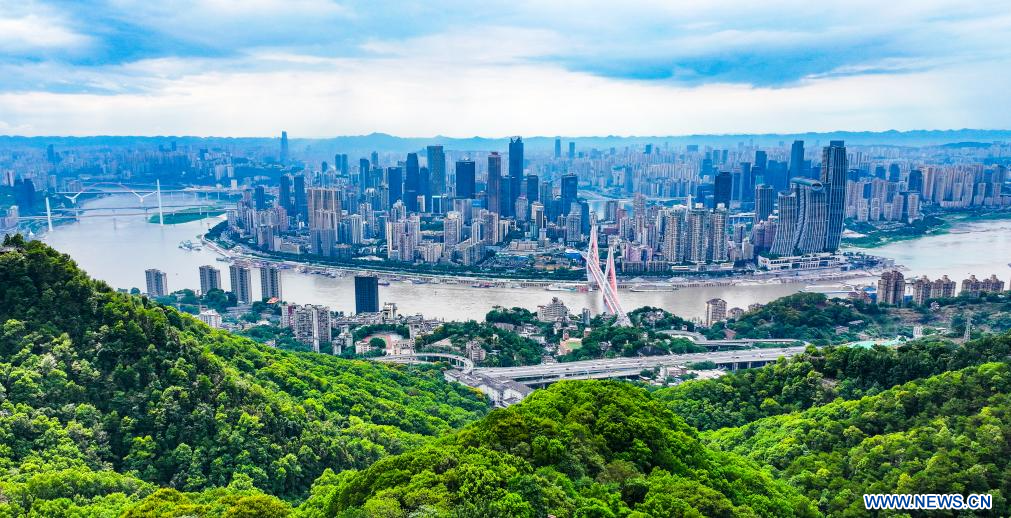 CHONGQING, 24 août (Xinhua) -- Photo prise par un drone montrant une vue de la ville de Chongqing, dans le sud-ouest de la Chine, le 23 août 2025. (Photo : Wang Quanchao)