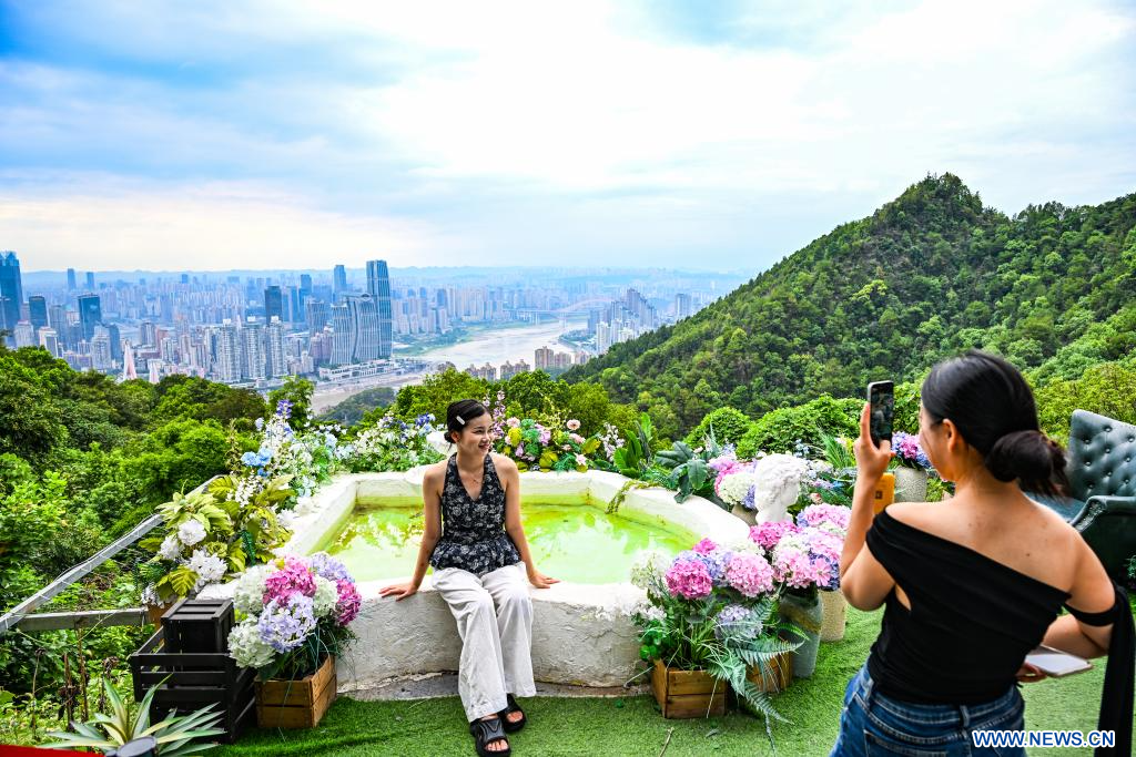 CHONGQING, 24 août (Xinhua) -- Des touristes profitent de leur temps libre sur le site panoramique de Nanshan, dans la ville de Chongqing, dans le sud-ouest de la Chine, le 23 août 2025. (Photo : Wang Quanchao)