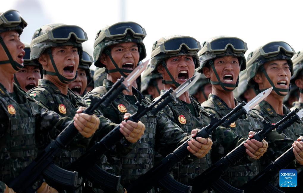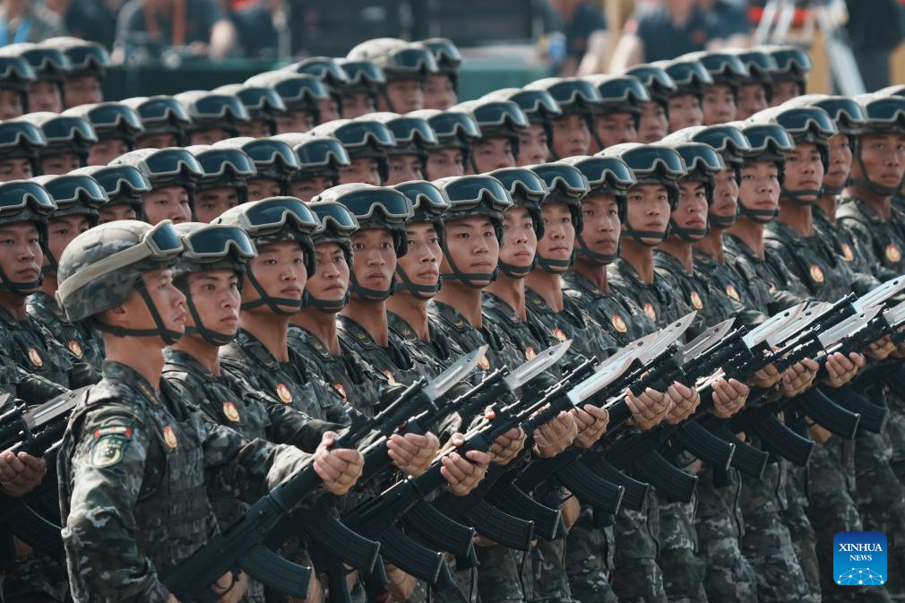 BEIJING, 3 septembre (Xinhua) -- La formation de la police armée populaire a défilé mercredi sur la place Tian'anmen lors du défilé militaire.