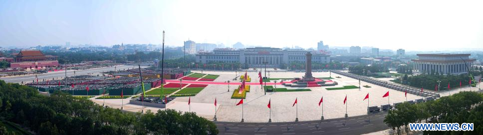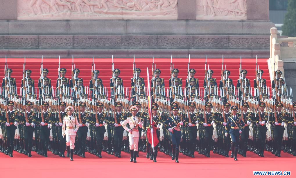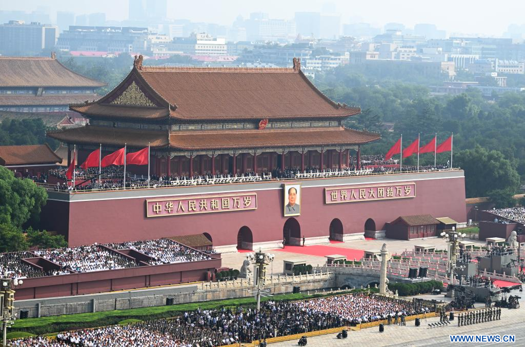 BEIJING, 3 septembre (Xinhua) -- Une grande cérémonie commémorative a commencé mercredi matin sur la place Tian'anmen à Beijing pour marquer le 80e anniversaire de la victoire de la Guerre de résistance du peuple chinois contre l'agression japonaise et de la Guerre mondiale antifasciste.