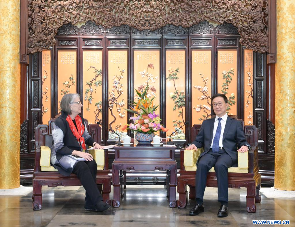 BEIJING, 4 septembre (Xinhua) -- Le vice-président chinois Han Zheng a rencontré jeudi Kate Forbes, présidente de la Fédération internationale des Sociétés de la Croix-Rouge et du Croissant-Rouge (FICR).